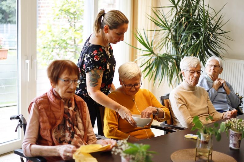 Unsere Mitarbeiter verstehen sich als „Alltagsbegleiter“ und unterstützen jeden Bewohner durch Betreuung, Pflege und bei der hauswirtschaftlichen Versorgung. Auch nachts ist immer ein Ansprechpartner vor Ort.