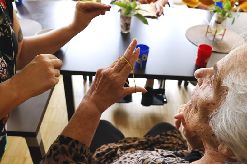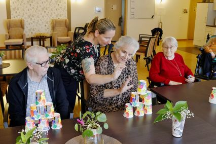 Unsere Mitarbeiter der internen ambulanten Ergotherapie bieten exklusiv den Bewohnerinnen und Bewohnern der Hausgemeinschaften ein fein abgestimmtes Programm zur Mobilisierung und individuellen Motivation.